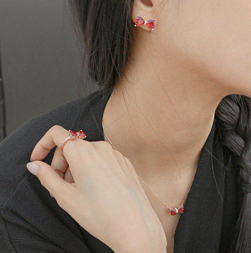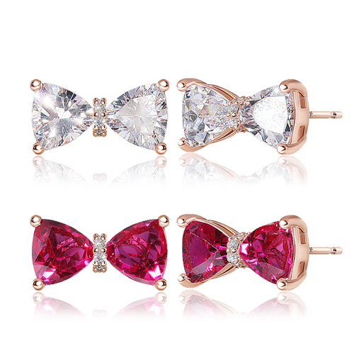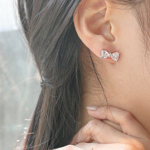 大胆で丸みのあるリボンモチーフはトリリオンカットを施したキュービックを左右対称に配置することで