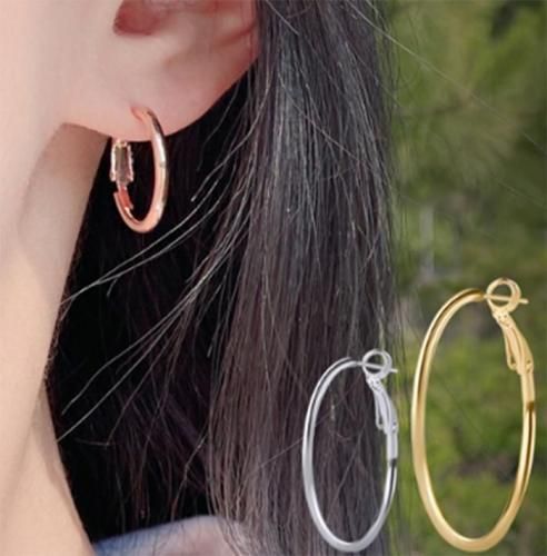 シンプルでどんなコーディネートにも合わせやすいフープピアス、14Kジト ワンタッチリングピアス。