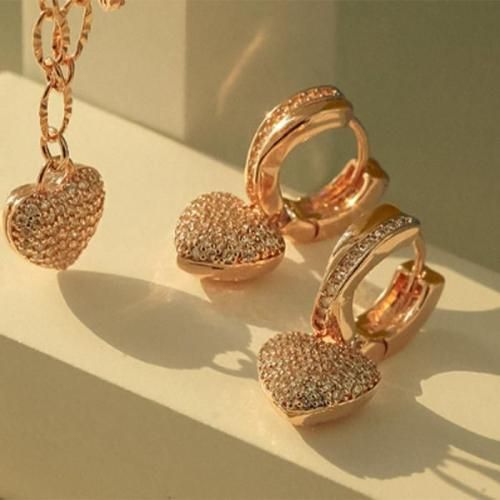 立体的でボリューム感のあるハートドロップモチーフが、華やかで愛らしい魅力を放つ「ケイティ ハートドロップ ワンタッチリングピアス」。