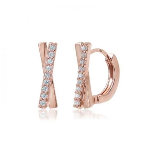 14K エックスモチーフ ワンタッチリングピアス ミル打ち×ストーンのXモチーフデザイン 華やかで洗練された印象 デイリーに使いやすいサイズ感