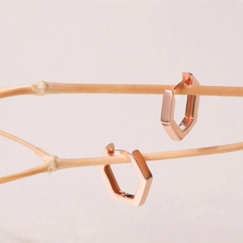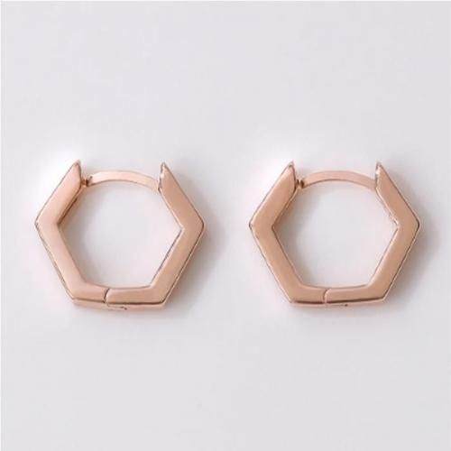 ミニマルなサイズ感と軽やかな着け心地が魅力の、六角形デザインのワンタッチリングピアス。