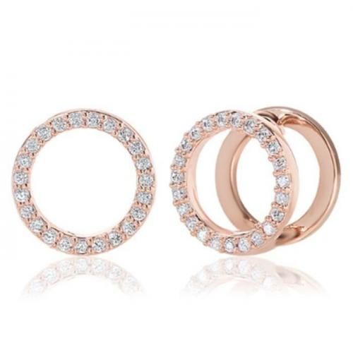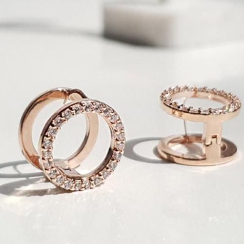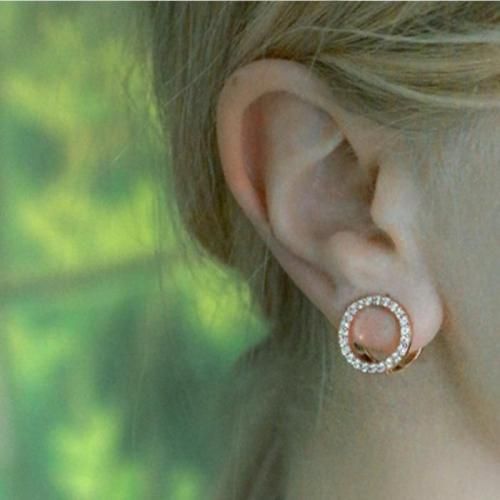 耳元に上品な輝きを添えるサークルデザインが魅力、ワンタッチサークルストーンリングピアス