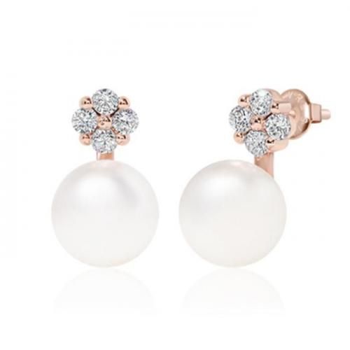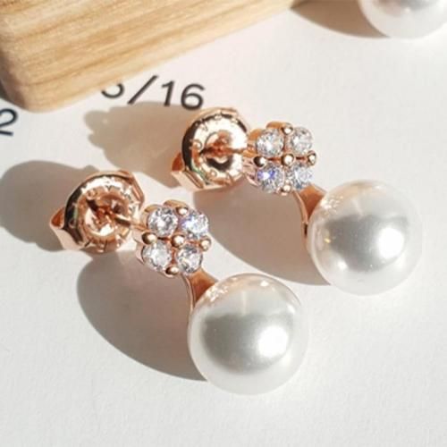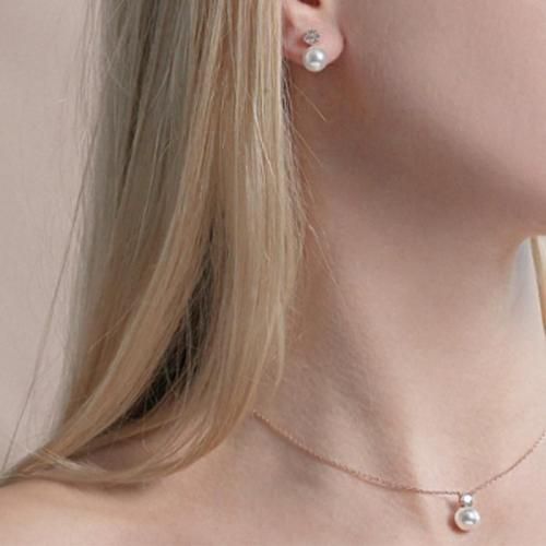 トップ部分には小さなキュービックジルコニアを花のようにあしらい、パールとのコントラストで可憐さと高級感を同時に演出。
