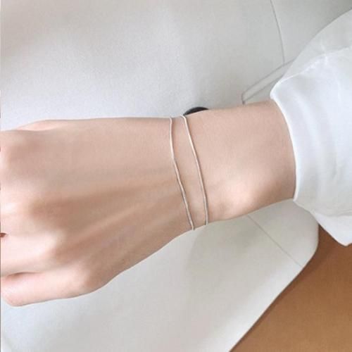 シンプルながらも二連のレイヤードがほどよい存在感を放ち、単品使いはもちろん他のブレスレットとの重ね付けにもぴったり。