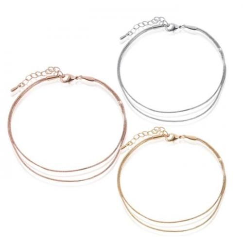繊細なスネークチェーンを二重に重ねたデザインが魅力のロアン スネーク レイヤード 2連チェーン ブレスレット。
